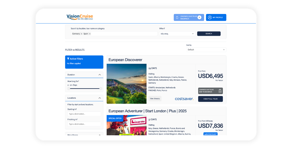 The White Label includes comparison functionality that allows users to view multiple tours side-by-side — ideal for travel agents and multi-tour operators.